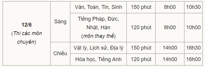 Lịch thi vào lớp 10 chuyên của Hà Nội như sau: