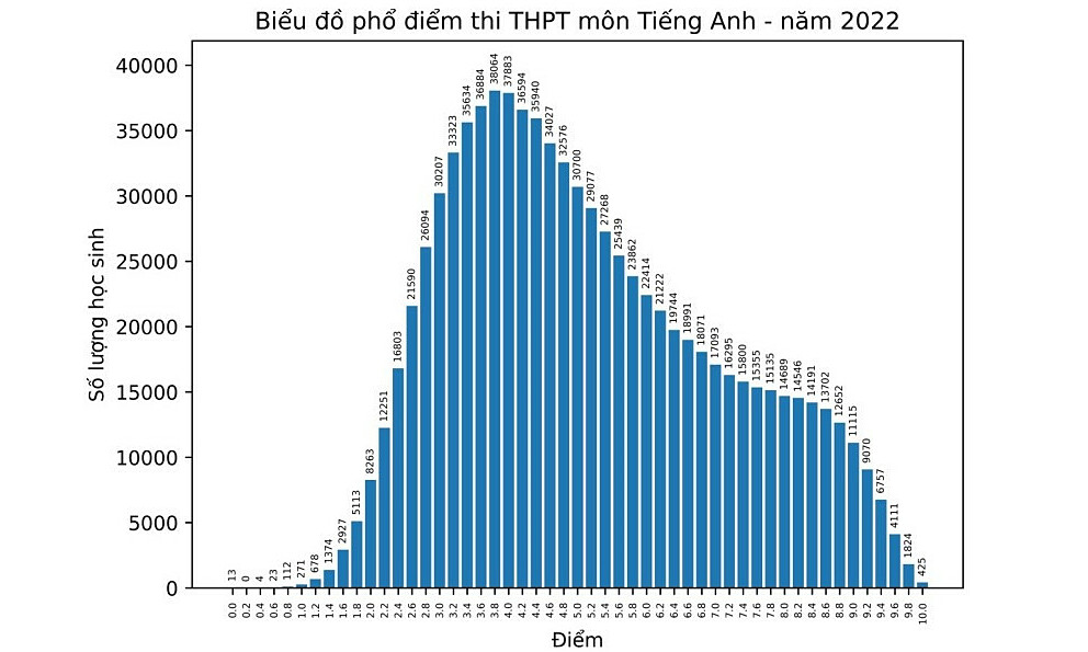 Phổ điểm thi tốt nghiệp THPT môn tiếng Anh năm 2022. Nguồn: Bộ Giáo dục và Đào tạo